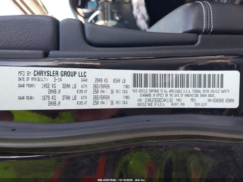2014 JEEP GRAND CHEROKEE - 1C4RJFBG9EC441181, цвет - , 3.6, Бензин, Полный привод из США
