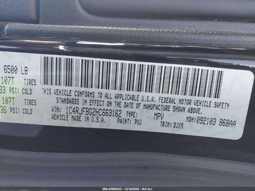 2017 JEEP GRAND CHEROKEE - 1C4RJFBG2HC663162, цвет - Черный, 3.6, Бензин, Полный привод из США