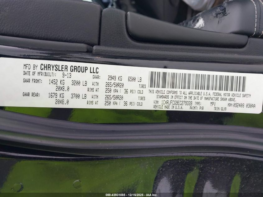 2014 JEEP GRAND CHEROKEE - 1C4RJFCG9EC279339, цвет - Черный, 3.6, Бензин, Полный привод из США