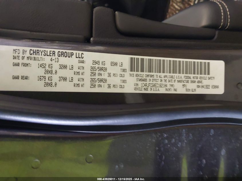 2014 JEEP GRAND CHEROKEE - 1C4RJFCG0EC162104, цвет - Черный, 3.6, Бензин, Полный привод из США