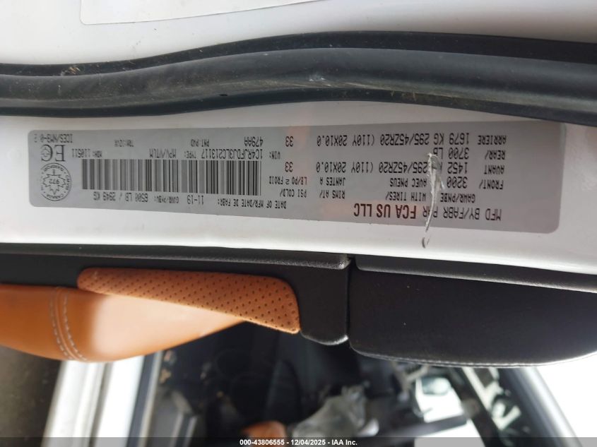 Цвет БелыйЦилиндры 8Привод Полный приводVIN 1C4RJFDJ3LC213117Состояние СтационарноПовреждения Неизвестно