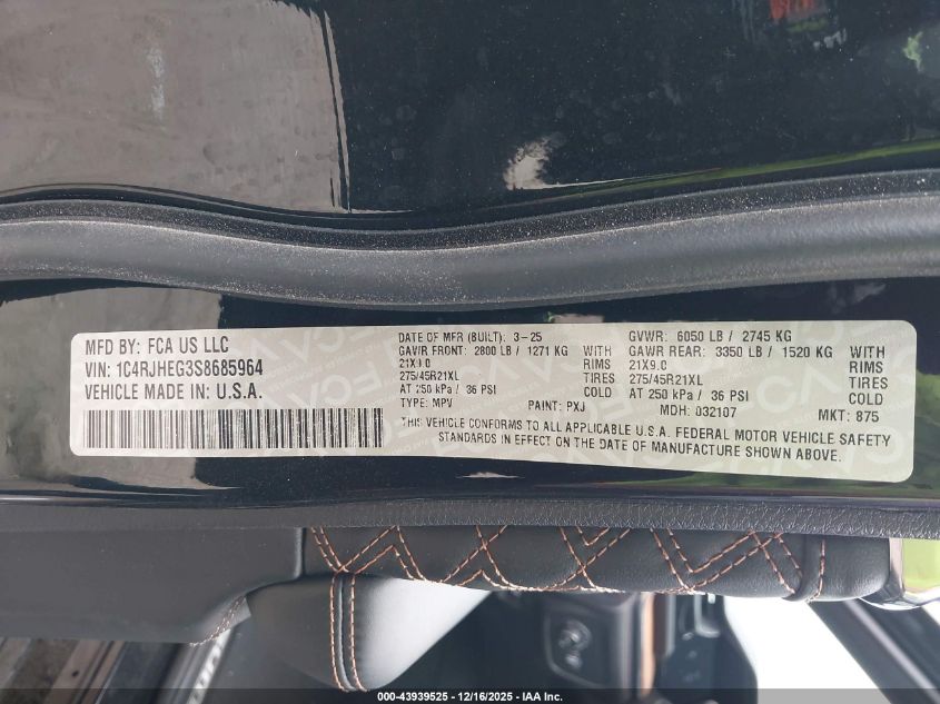 2025 JEEP GRAND CHEROKEE - 1C4RJHEG3S8685964, цвет - Черный, 3.6, Бензин, Полный привод из США
