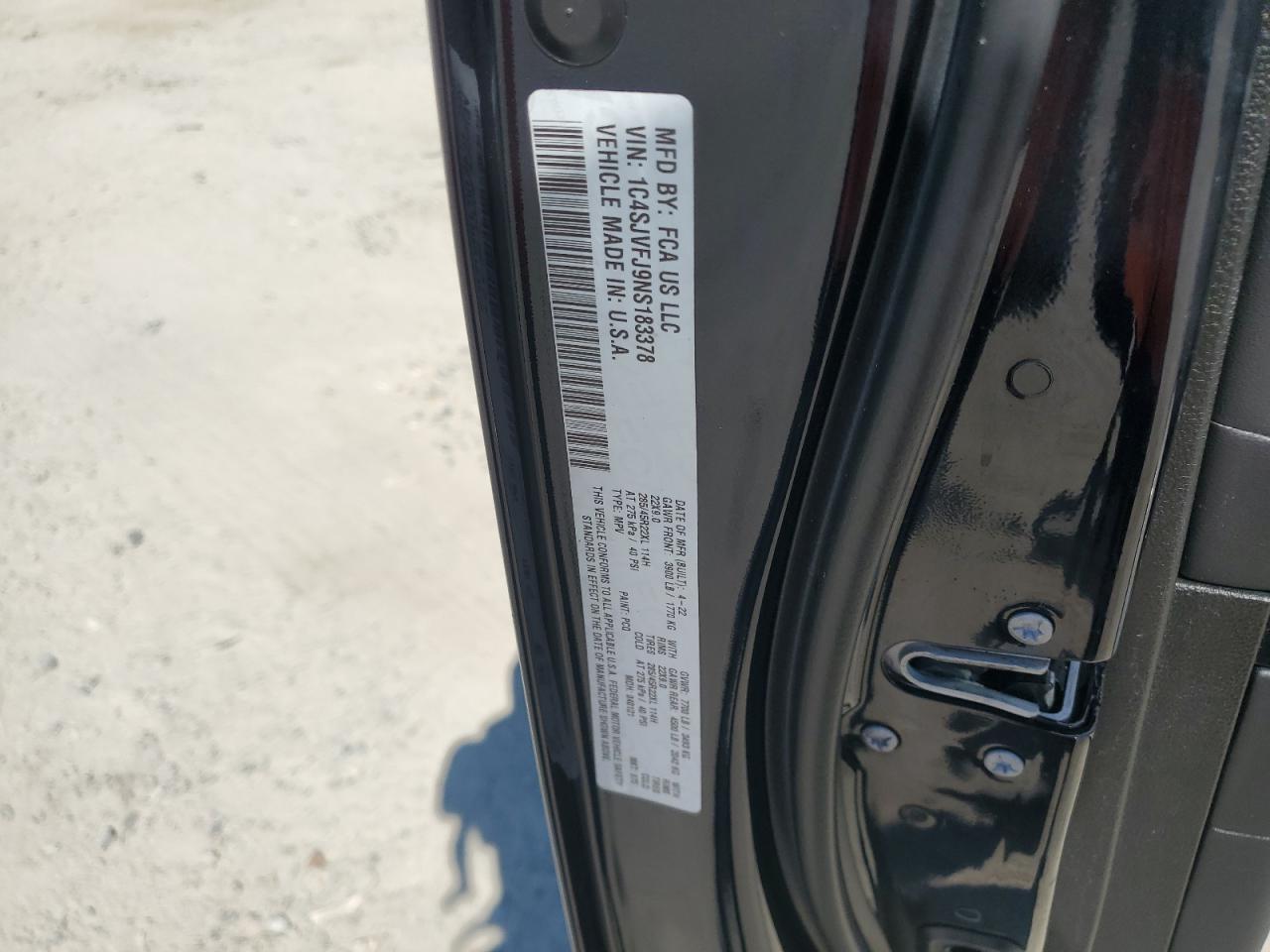 Цвет ЧерныйЦилиндры 8Привод 4x4 с задним приводомVIN 1C4SJVFJ9NS183378Состояние НеизвестноПовреждения ВодаДата аукциона 2025-10-07