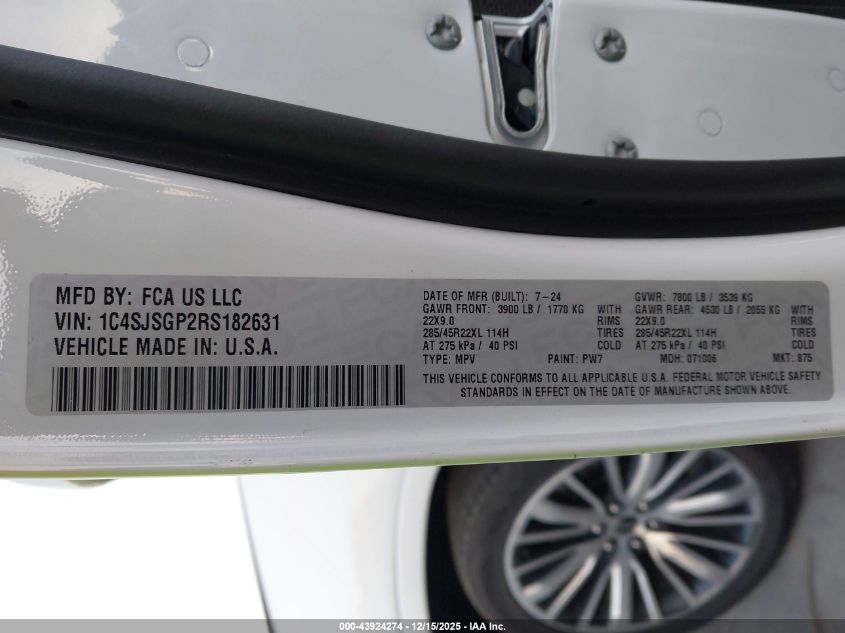 2024 JEEP GRAND WAGONEER - 1C4SJSGP2RS182631, цвет - , 3.0, Бензин, Полный привод из США