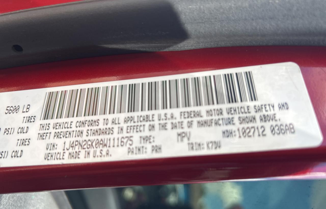 2010 JEEP LIBERTY - 1J4PN2GK0AW111675, цвет - Красный, 3.7, Бензин, 4x4 с задним приводом из США