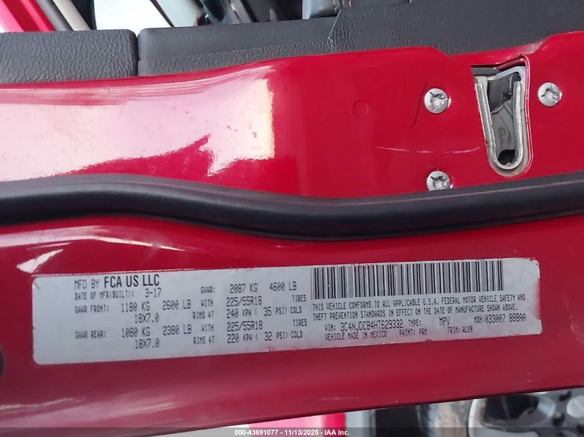 Цвет КрасныйЦилиндры 4Привод Полный приводVIN 3C4NJDCB4HT629332Состояние СтационарноПовреждения Передняя или задняя