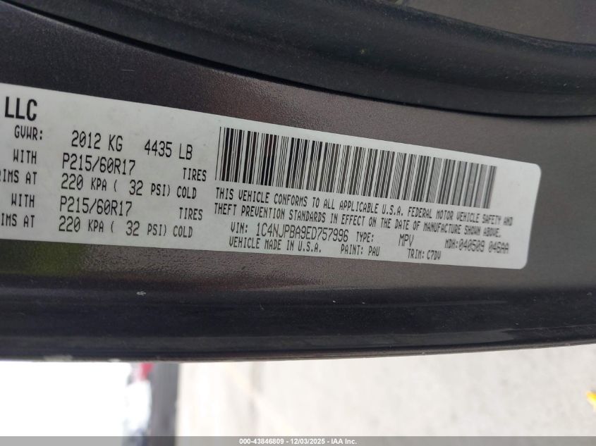 Цвет СерыйЦилиндры 4Привод Передний приводVIN 1C4NJPBA9ED757996Состояние Заводится и едет (проверено)Повреждения Обычный износДата аукциона 2025-12-18