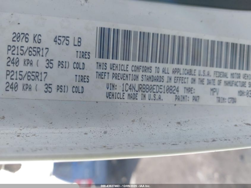 Цвет БелыйЦилиндры 4Привод Полный приводVIN 1C4NJRBB0ED510824Состояние Заводится и едет (проверено)Повреждения Обычный износДата аукциона 2025-12-16