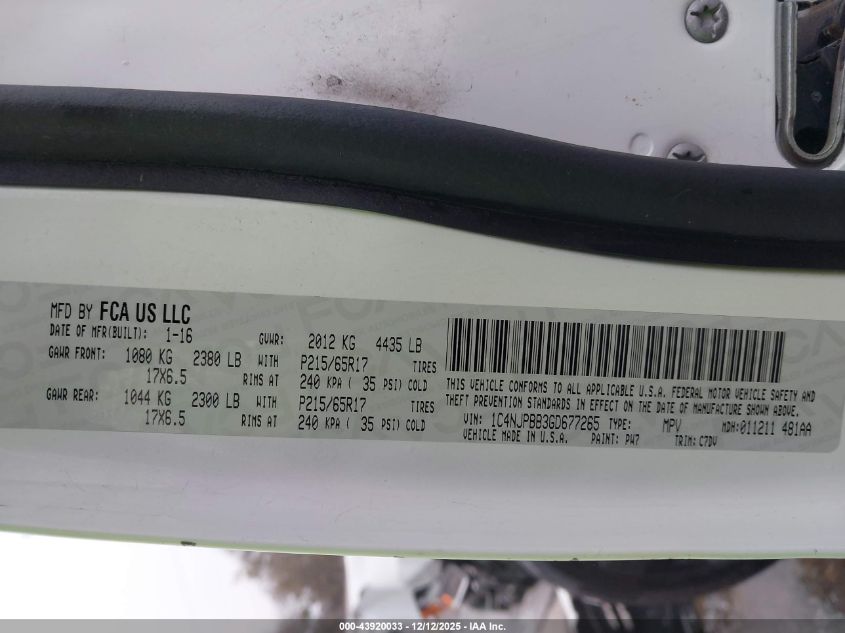 Цвет БелыйЦилиндры 4Привод Передний приводVIN 1C4NJPBB3GD677265Состояние Заводится и едет (проверено)Повреждения Передняя левая