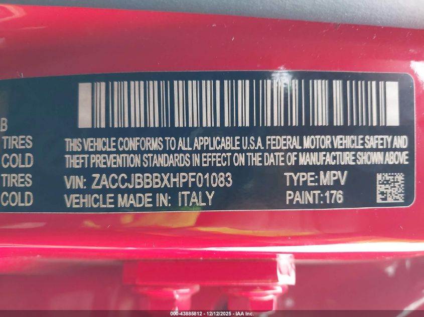 2017 JEEP RENEGADE - ZACCJBBBXHPF01083, цвет - Красный, 2.4, Бензин, Полный привод из США