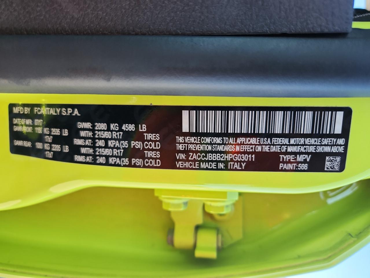 2017 JEEP RENEGADE - ZACCJBBB2HPG03011, цвет - Зеленый, 2.4, Бензин, 4x4 с передним приводом из США