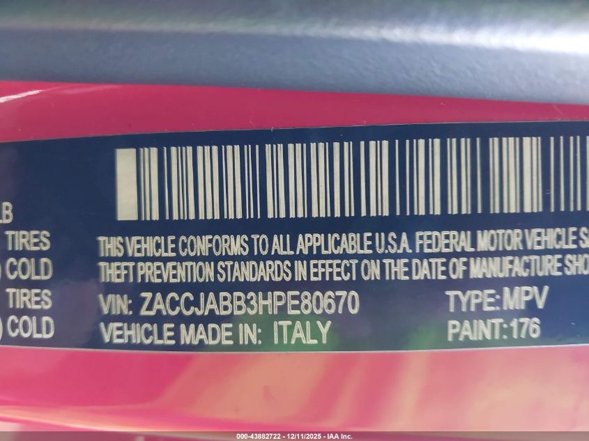 2017 JEEP RENEGADE - ZACCJABB3HPE80670, цвет - Красный, 2.4, Бензин, Передний привод из США