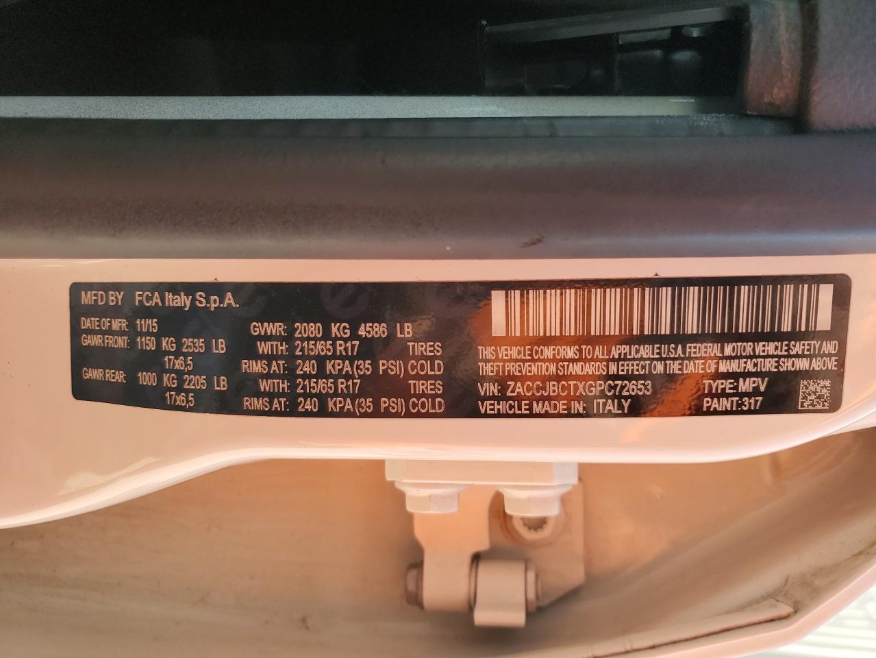 2016 JEEP RENEGADE - ZACCJBCTXGPC72653, цвет - Белый, 2.4, Бензин, 4x4 с передним приводом из США