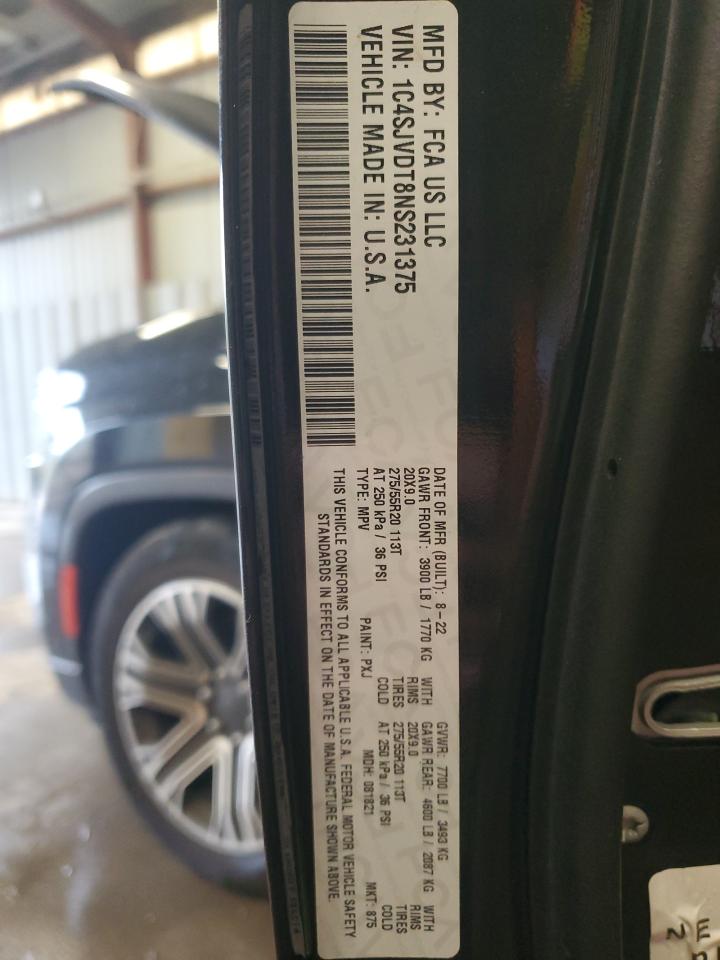Цвет ЧерныйЦилиндры 8Привод 4x4 с задним приводомVIN 1C4SJVDT8NS231375Состояние Заводится и едет (проверено)Повреждения По бокамДата аукциона 2025-10-08