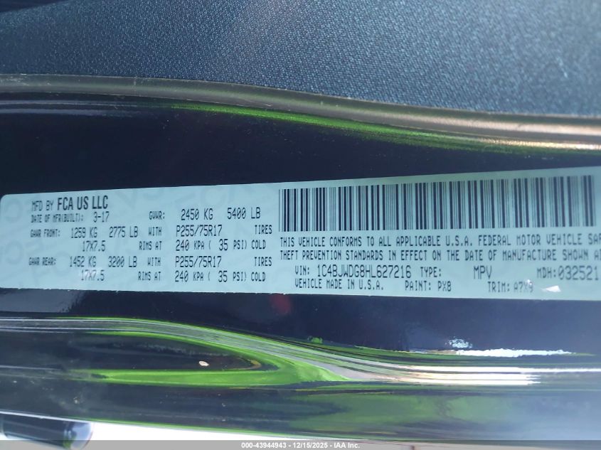 2017 JEEP WRANGLER - 1C4BJWDG8HL627216, цвет - , 3.6, Бензин, Полный привод из США