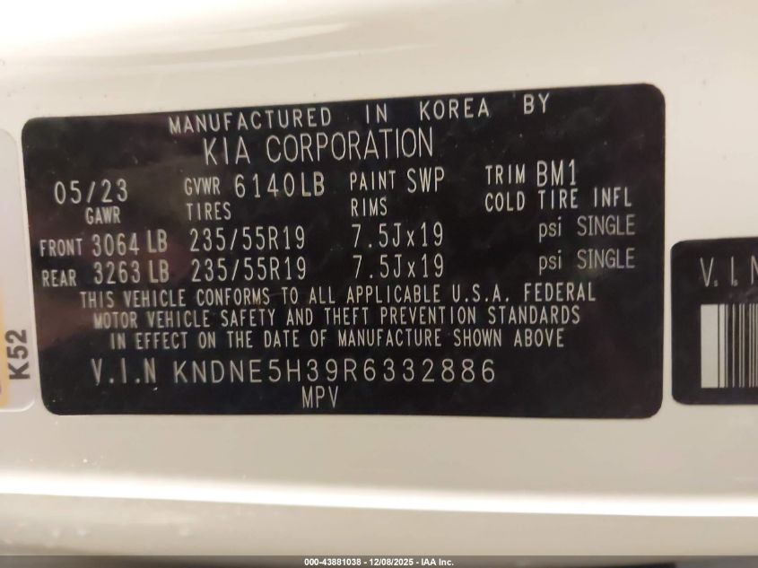 2024 KIA CARNIVAL - KNDNE5H39R6332886, цвет - Белый, 3.5, Бензин, Передний привод из США