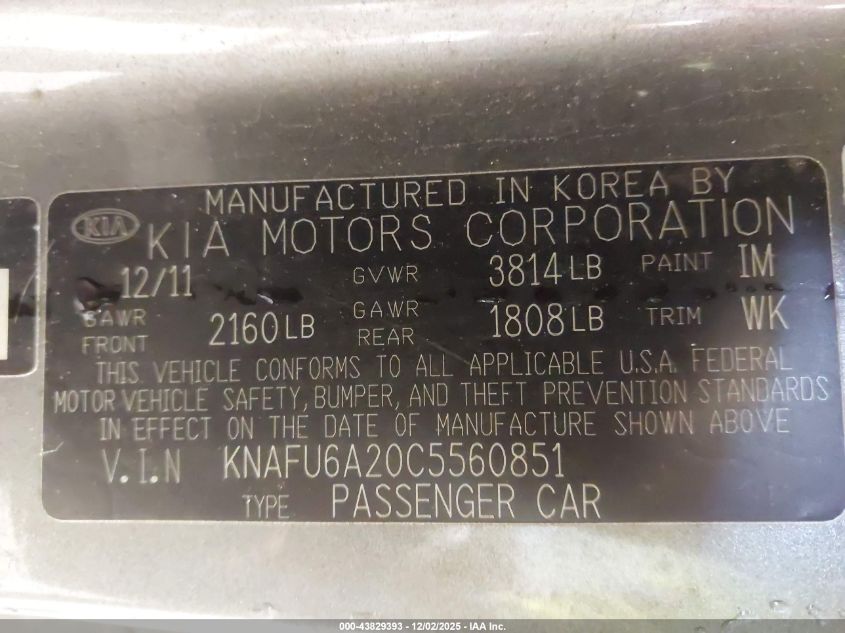 2012 KIA FORTE EX
