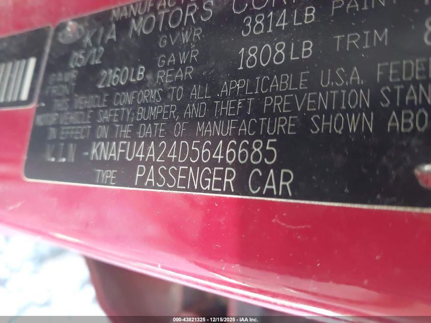 2013 KIA FORTE - KNAFU4A24D5646685, цвет - , 2.0, Бензин, Передний привод из США
