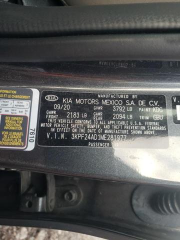 2021 KIA FORTE - 3KPF24AD1ME281977, цвет - Серый, 2.0, Бензин, из США