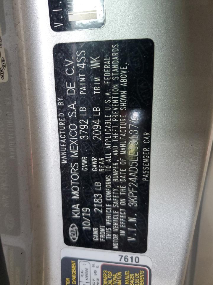2020 KIA FORTE - 3KPF24AD5LE191374, цвет - Серебряный, 2.0, Бензин, из США
