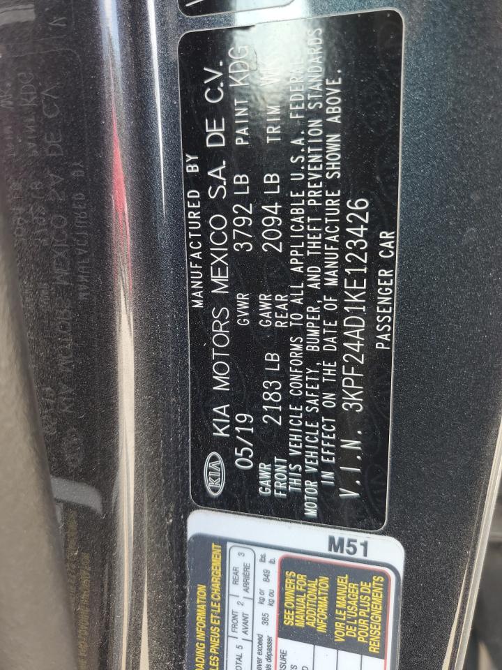 2019 KIA FORTE - 3KPF24AD1KE123426, цвет - Серый, 2.0, Бензин, из США