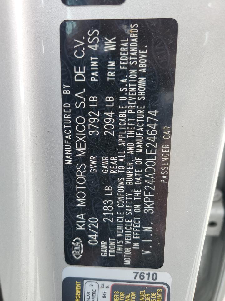 2020 KIA FORTE - 3KPF24AD0LE246474, цвет - Серебряный, 2.0, Бензин, из США