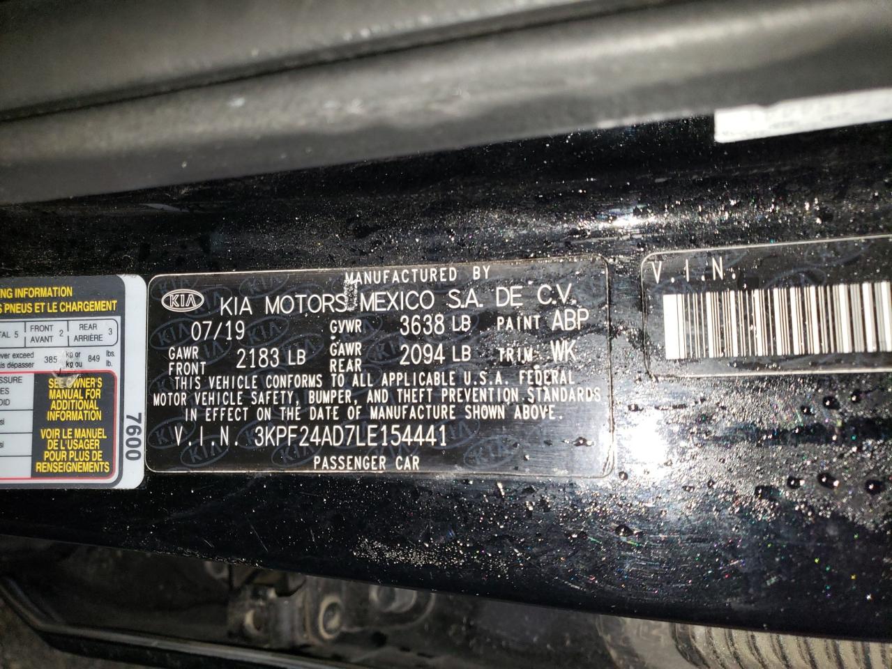2020 KIA FORTE - 3KPF24AD7LE154441, цвет - Черный, 2.0, Бензин, из США