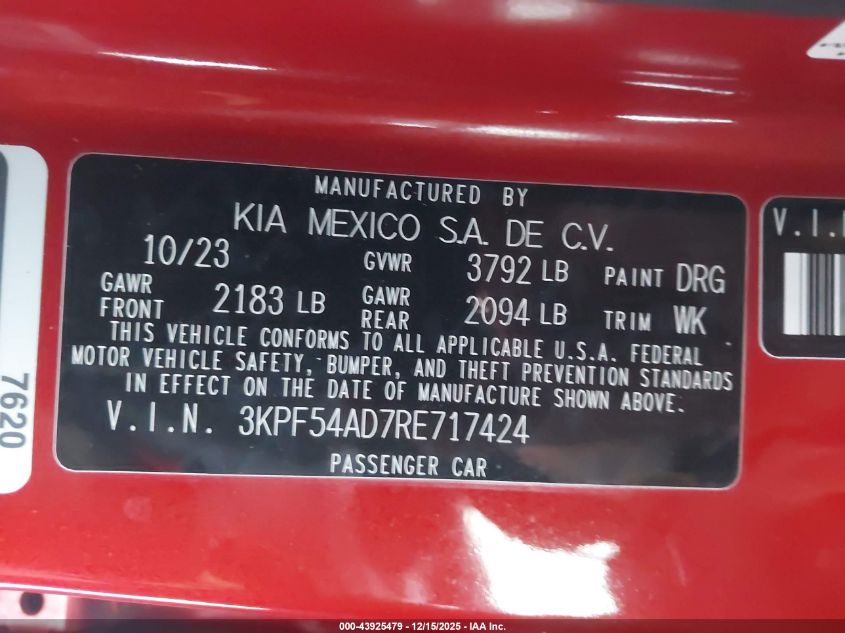 2024 KIA FORTE - 3KPF54AD7RE717424, цвет - Апельсиновый, 2.0, Бензин, Передний привод из США