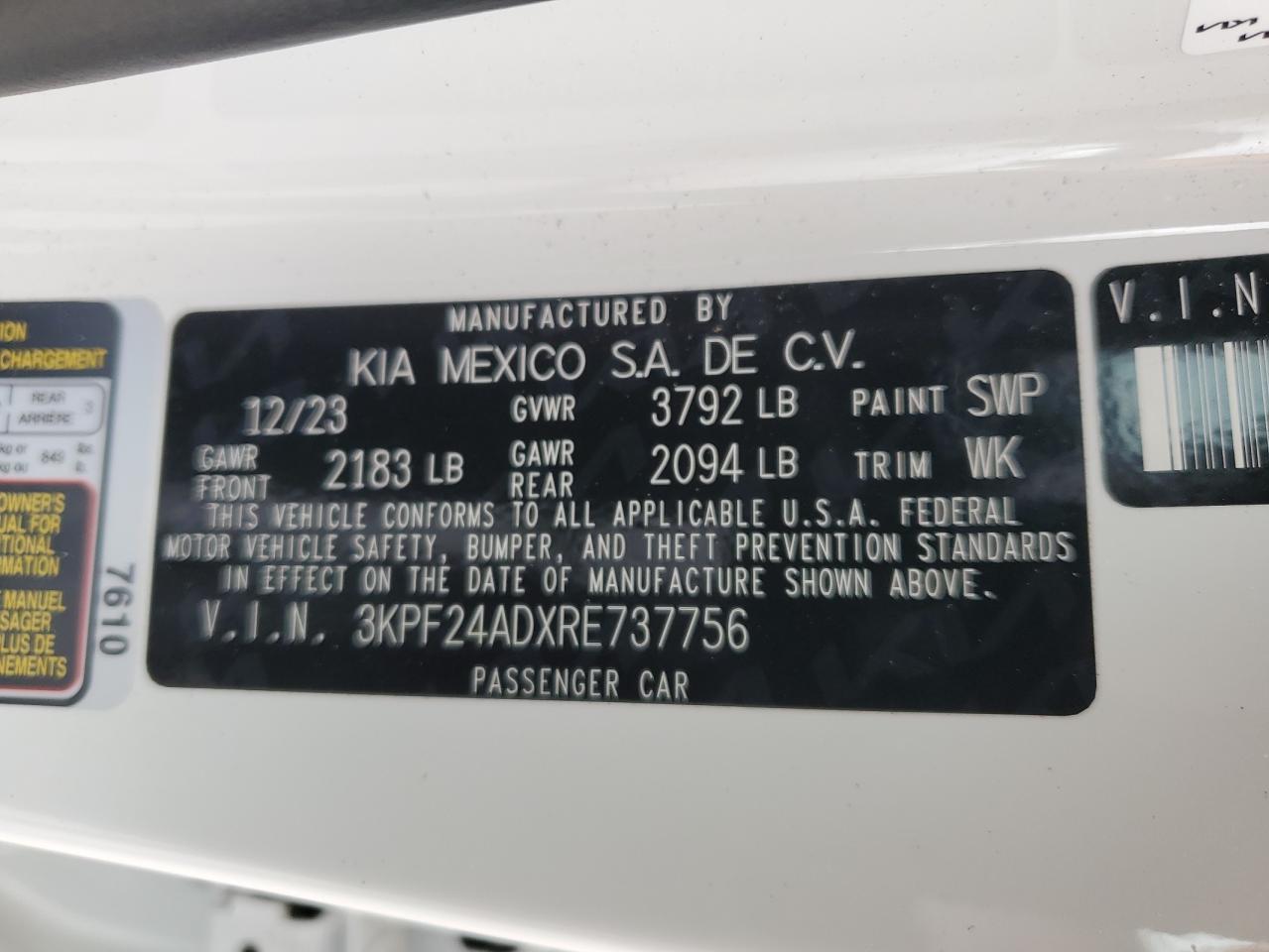 2024 KIA FORTE - 3KPF24ADXRE737756, цвет - Белый, 2.0, Бензин, из США
