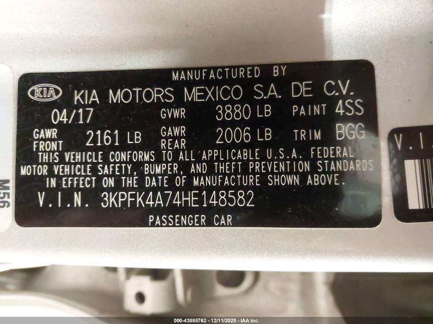 2017 KIA FORTE - 3KPFK4A74HE148582, цвет - Серебряный, 2.0, Бензин, Передний привод из США