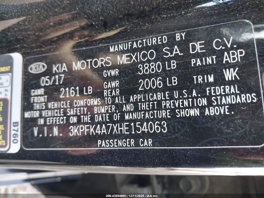 2017 KIA FORTE - 3KPFK4A7XHE154063, цвет - Черный, 2.0, Бензин, Передний привод из США