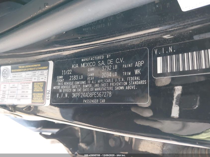 2023 KIA FORTE - 3KPF24AD8PE567278, цвет - Черный, 2.0, Бензин, Передний привод из США
