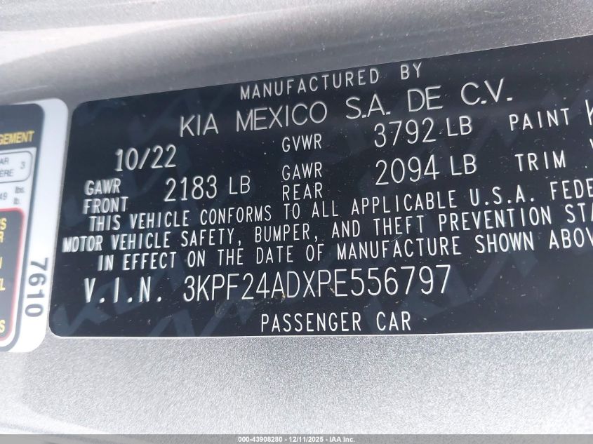 2023 KIA FORTE - 3KPF24ADXPE556797, цвет - Серый, 2.0, Бензин, Передний привод из США
