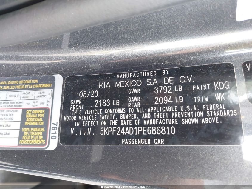 2023 KIA FORTE - 3KPF24AD1PE686810, цвет - Серый, 2.0, Бензин, Передний привод из США