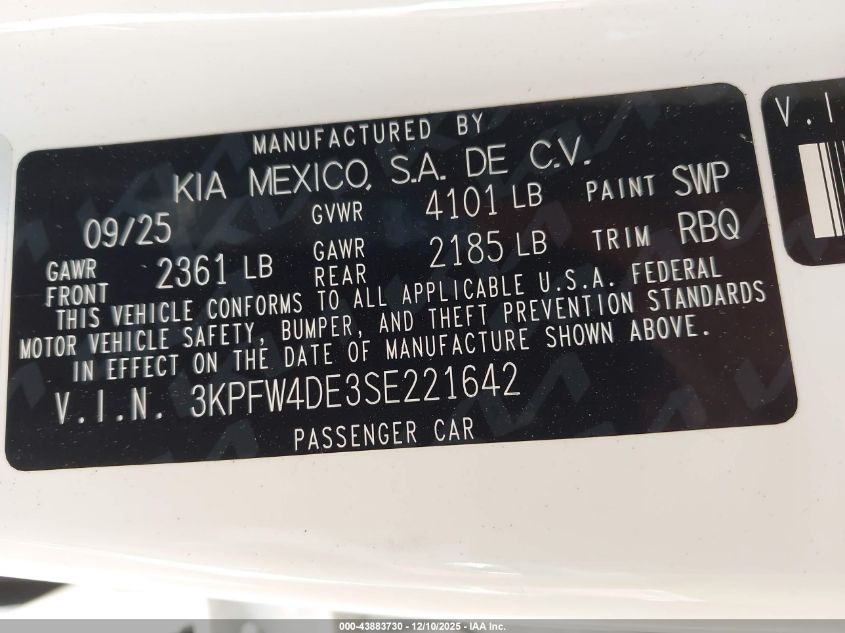 2025 KIA K4 - 3KPFW4DE3SE221642, цвет - Белый, 2.0, Бензин, Передний привод из США