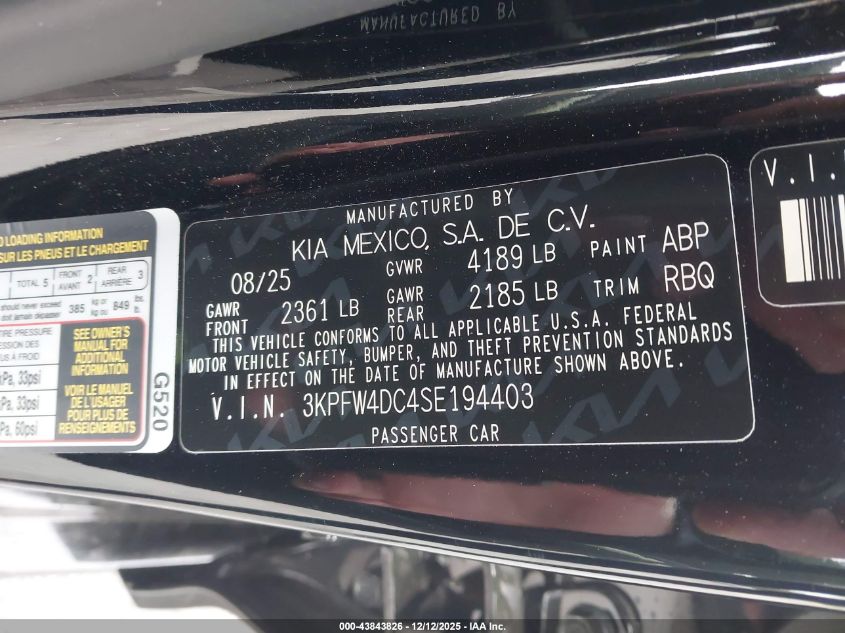 2025 KIA K4 - 3KPFW4DC4SE194403, цвет - Черный, 1.6, Бензин, Передний привод из США