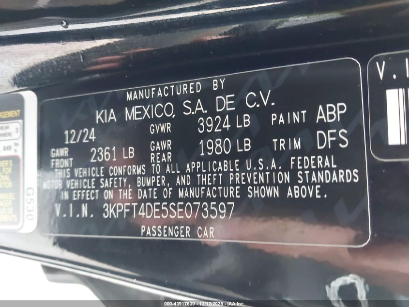 2025 KIA K4 - 3KPFT4DE5SE073597, цвет - Черный, 2.0, Бензин, Передний привод из США
