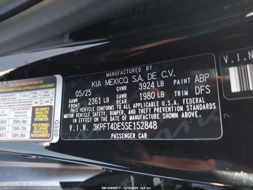 2025 KIA K4 - 3KPFT4DE5SE152848, цвет - Черный, 2.0, Бензин, Передний привод из США