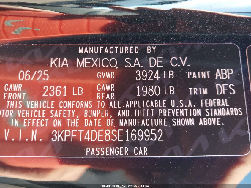 2025 KIA K4 - 3KPFT4DE8SE169952, цвет - Черный, 2.0, Бензин, Передний привод из США