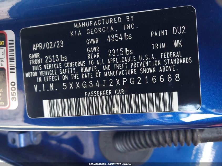 2023 KIA K5 - 5XXG34J2XPG216668, цвет - Синий, 1.6, Бензин, Передний привод из США