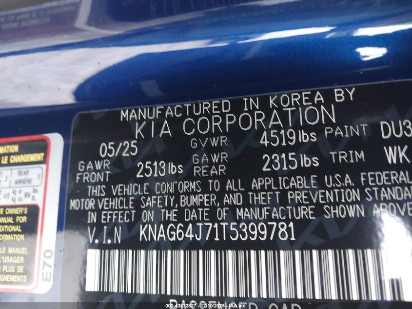 2026 KIA K5 - KNAG64J71T5399781, цвет - Синий, 2.5, Бензин, Полный привод из США