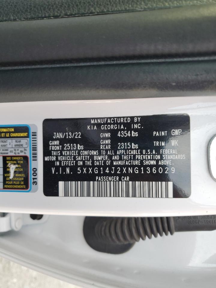 2022 KIA K5 - 5XXG14J2XNG136029, цвет - Белый, 1.6, Бензин, из США