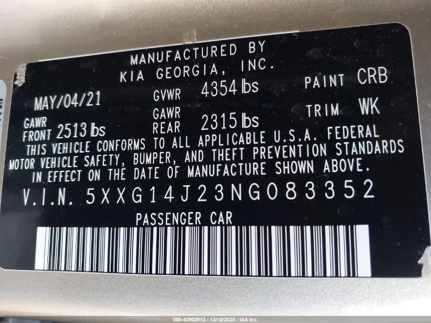 2022 KIA K5 - 5XXG14J23NG083352, цвет - Шампань, 1.6, Бензин, Передний привод из США
