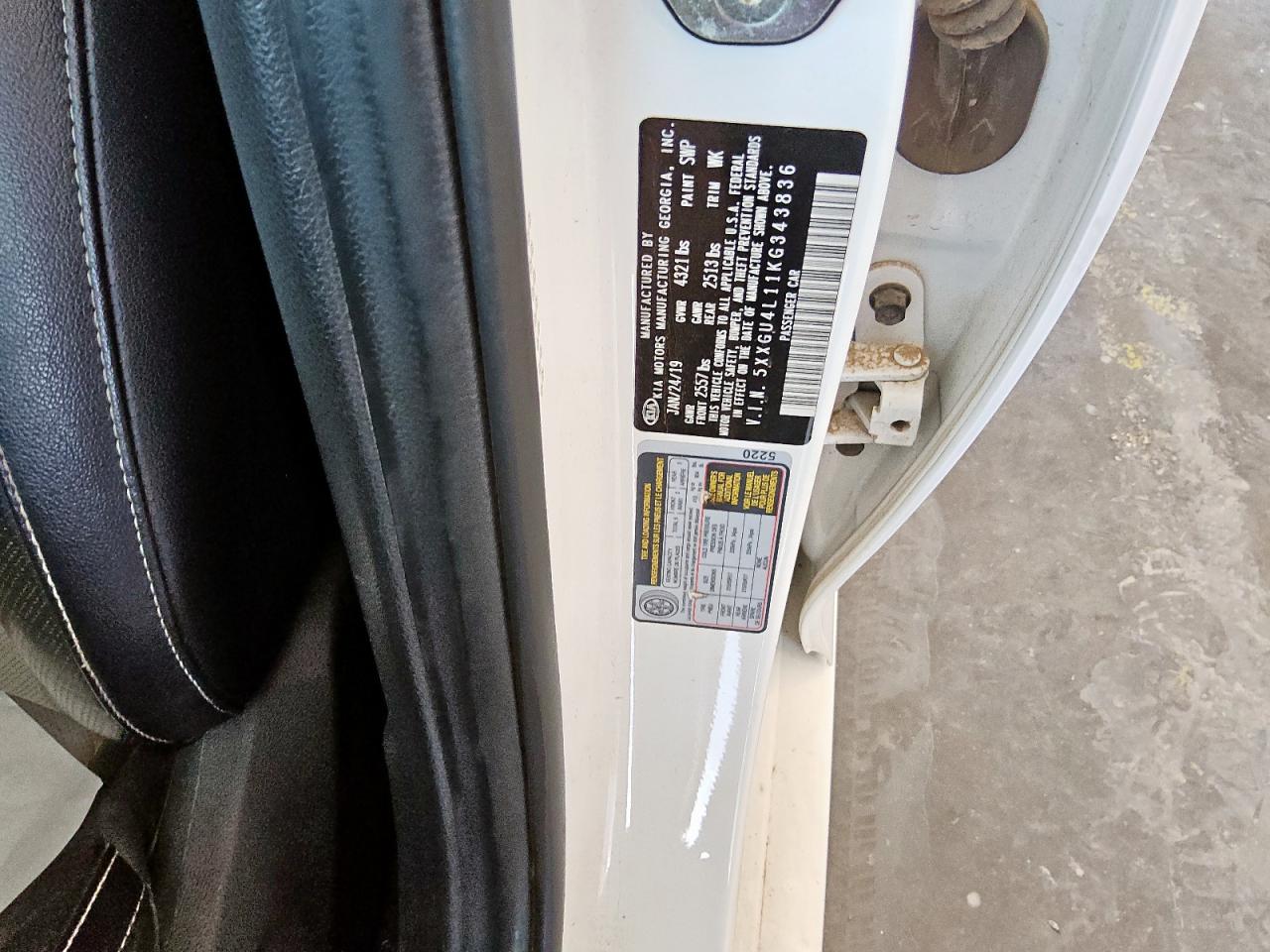2019 KIA OPTIMA - 5XXGU4L11KG343836, цвет - Белый, 1.6, Бензин, из США