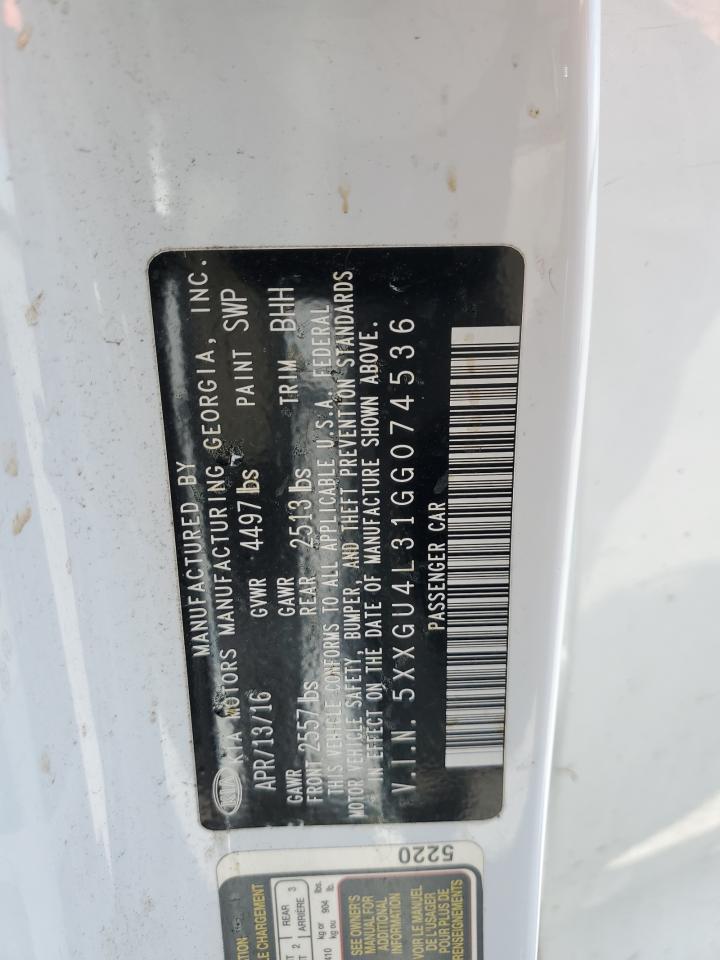 2016 KIA OPTIMA - 5XXGU4L31GG074536, цвет - Белый, 2.4, Бензин, из США