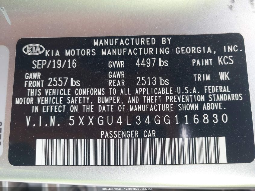 2016 KIA OPTIMA - 5XXGU4L34GG116830, цвет - Серебряный, 2.4, Бензин, Передний привод из США