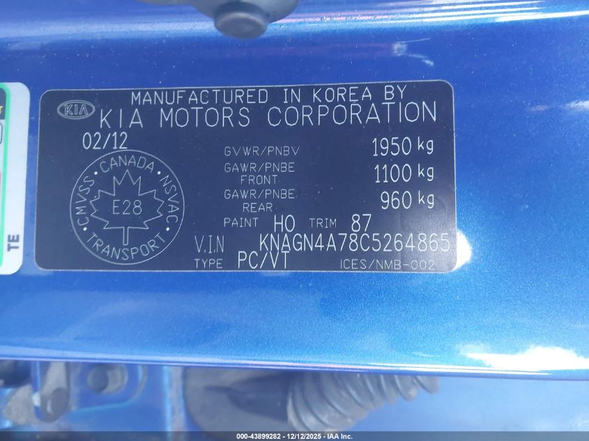 2012 KIA OPTIMA - KNAGN4A78C5264865, цвет - Синий, 2.4, Бензин, Передний привод из США