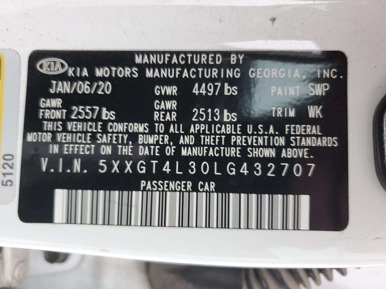 2020 KIA OPTIMA - 5XXGT4L30LG432707, цвет - Белый, 2.4, Бензин, из США