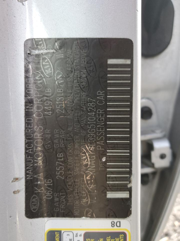 2016 KIA OPTIMA - KNAGT4L39G5104287, цвет - Серебряный, 2.4, Бензин, из США