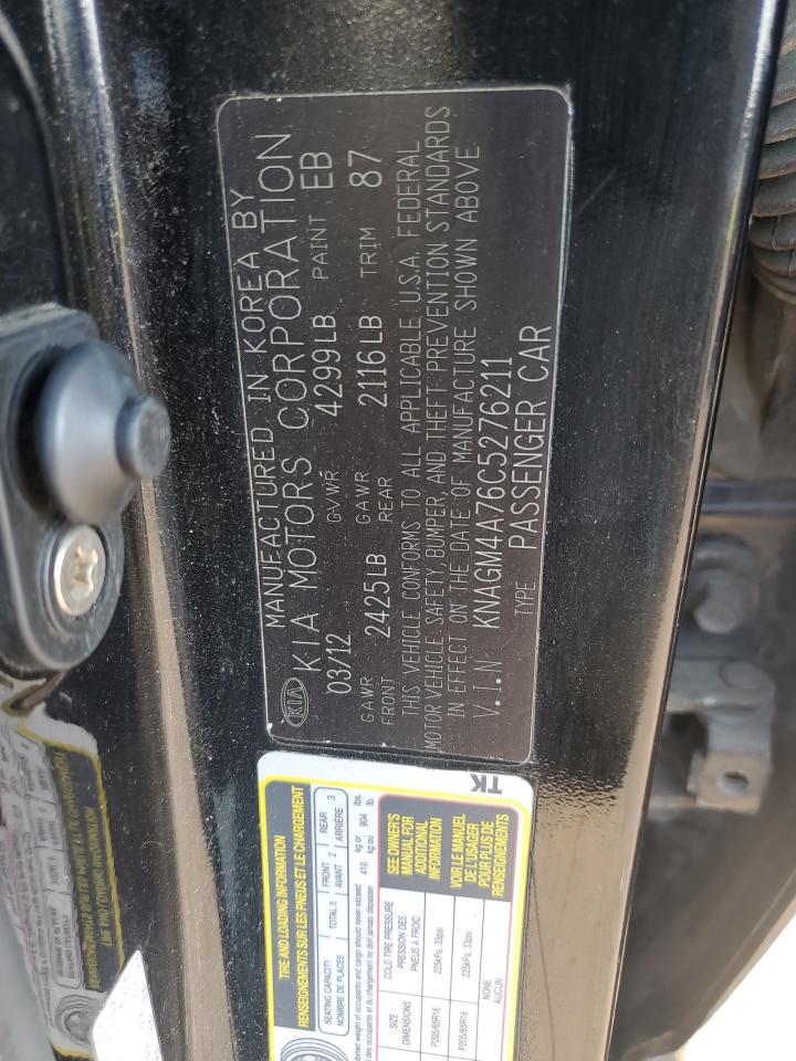 2012 KIA OPTIMA - KNAGM4A76C5276211, цвет - Черный, 2.4, Бензин, из США